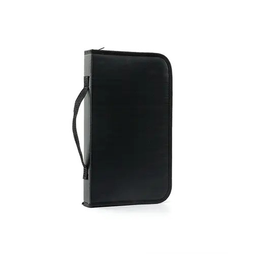 Descrição: Kit churrasco 5 peças em estojo de nylon com alça e parte interna com elástico para fixar as peças. Possui tábua de madeira com canaleta, três facas de corte e tesoura.