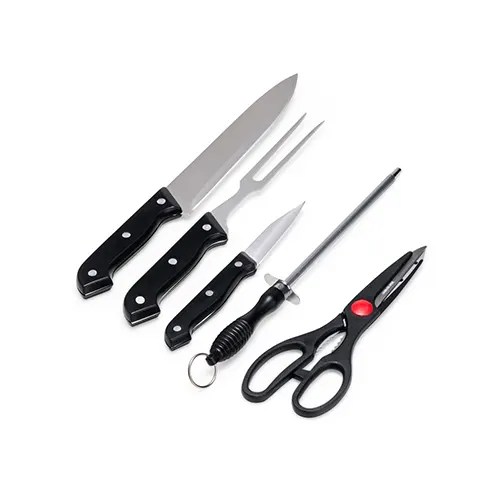Descrição: Churrascos irresistíveis começam com os utensílios certos! Nosso kit de 5 peças em inox, com cabos plásticos e estojo em nylon, inclui: uma faca chef de 7 polegadas, versátil para diversas tarefas na cozinha; uma faca de legumes de 3 polegadas, ideal para descascar e cortar vegetais; um garfo perfeito para dominar a grelha; uma chaira, essencial para manter as facas sempre afiadas; e uma tesoura multiuso para cortar alimentos, legumes, verduras e carnes. Além disso, a tesoura possui pequenos dentes entre os cabos que funcionam como um quebra-nozes. O kit também acompanha uma plaquinha de metal, permitindo personalizar e dar um toque único ao churrasco. Este kit é perfeito para preparar churrascos deliciosos!