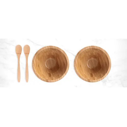 Kit para café da manhã. Conta com duas cumbucas e duas colheres em Bambu.