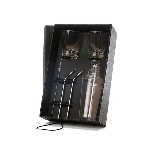Uma gravação a Laser nas copos; Silkscreen na coqueteleira.