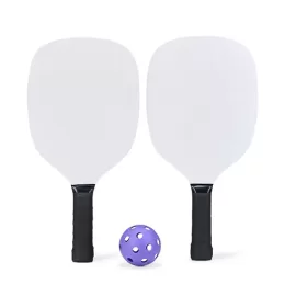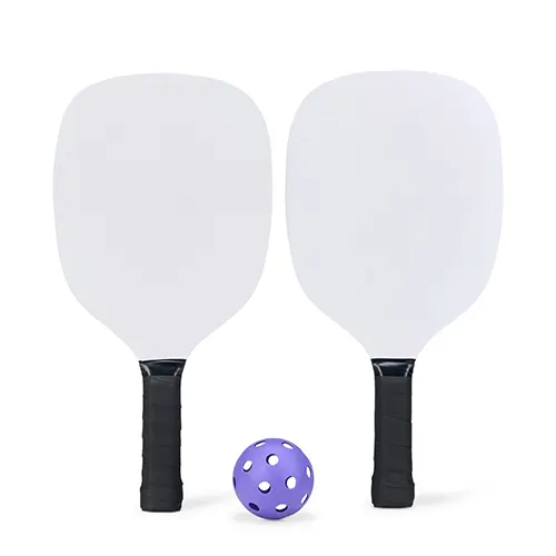 Descrição: Kit Pickleball com duas raquetes de madeira (sendo uma face personalizada e outra lisa) com grip composto em fibras de carbono e vidro e quatro bolas plástica com 26 furos. Acompanha bolsa de nylon com alça de mão e visor plástico transparente.