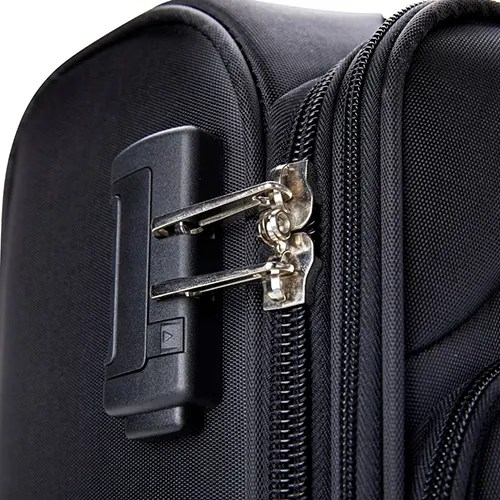 Mala de bordo 30 litros com padrão ANAC (Agência Nacional de Aviação Civil), confeccionada em poliéster de alta qualidade, com cadeado numérico TSA. Possui etiquetas de identificação embutidas na mala, sendo uma integrada ao cadeado e outra na parte de trás da mala, acoplada por estojo em couro sintético. Três compartimentos, bolso telado, cinta compressora para roupas, alça de mão em poliéster, puxador retrátil com regulagem de tamanho, zíper expansível e quatro rodinhas 360º.