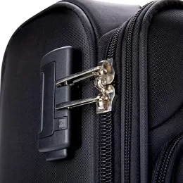 Descrição: Mala de bordo 47 Litros com padrão ANAC (Agência Nacional de Aviação Civil), confeccionada em poliéster de alta qualidade, com cadeado numérico TSA. Possui etiquetas de identificação embutidas na mala, sendo uma integrada ao cadeado e outra na parte de trás da mala, acoplada por estojo em couro sintético. Três compartimentos, bolso telado, cinta compressora para roupas, alça de mão em poliéster, puxador retrátil com regulagem de tamanho e quatro rodinhas 360º.