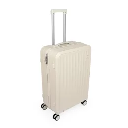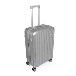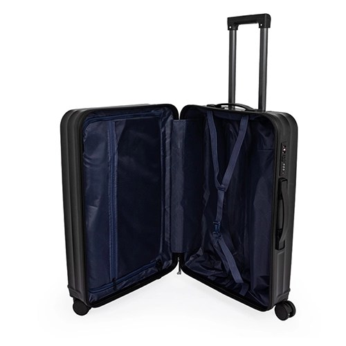 Descrição: Pensada para tornar as viagens mais práticas e confortáveis, esta mala combina estrutura resistente com design exclusivo e espaço para personalização. Leve e ideal para acompanhar suas viagens, ela conta com espaço interno com divisória, que contém bolso em tela e outro espaço com cinta compressora para manter tudo no lugar. Além disso, conta com 4 apoios laterais para descanso e 4 rodas com giro 360°, oferecendo facilidade de locomoção em qualquer direção. Seu puxador ergonômico ajustável, 2 alças de mãos e cadeado TSA garantem máxima proteção e mobilidade. A escolha perfeita para quem busca uma mala espaçosa, fácil de manusear e que proporciona praticidade e segurança durante as viagens.