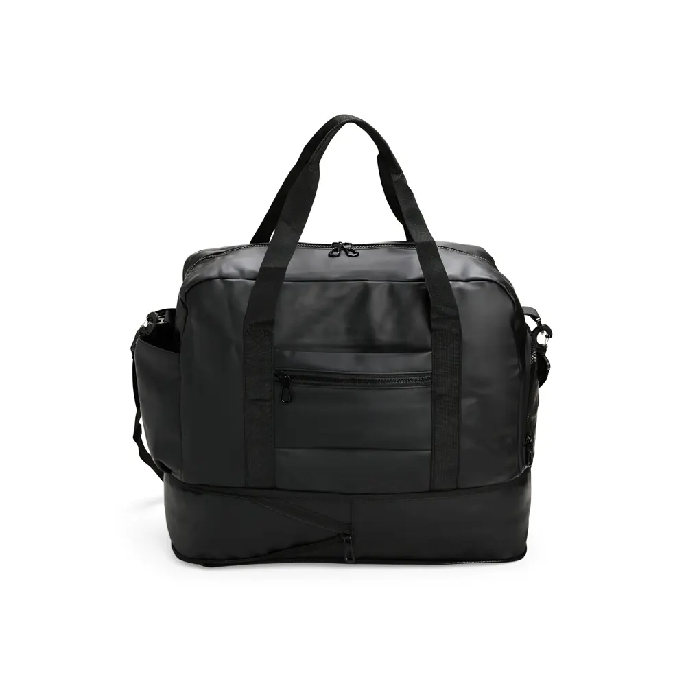 Descrição: Mini bolsa confeccionada em tecido resistente à água e alça transversal ajustável em nylon. Possui fechamento em zíper e bolso frontal que facilita a organização de objetos.