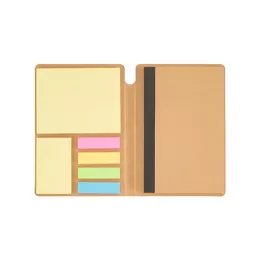 Mini caderno com elástico, sticky notes, miolo sem pauta na cor bege com 48 folhas.