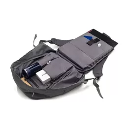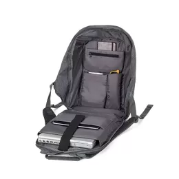 Descrição: Mochila antifurto impermeável, seu compartimento principal com abertura de zíper na área traseira impossibilita a abertura da mochila nas costas, assim protegendo-o de furtos e trazendo mais segurança para seus objetos de valores. Compartimento principal com bolso para notebook até 15.6 polegadas, bolso para tablet até 9 polegadas, três bolsos para acessórios e bolso com zíper, contém ainda um compartimento frontal e compartimento lateral. Contem faixa reflexiva na área frontal, alça de mãos, acesso para encaixe de malas com puxador, alças para as costas ajustáveis e área traseira com revestimento espumado.