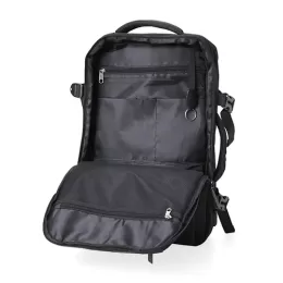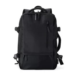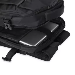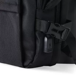 Descrição: Mochila de nylon 20 litros com quatro compartimentos, sendo o principal com bolso para notebook 15,6 e tablet 12,4. Com divisórias internas para acessórios e porta chave, a mochila possui adaptador USB externo, alça para encaixe em malas de viagem, alças de compensação, duas alças de mãos, área costada com revestimento espumado e alças para as costas com faixas refletivas e revestimento espumado.