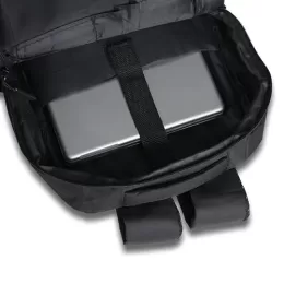 Descrição: Mochila de nylon 20 litros com quatro compartimentos, sendo o principal com bolso para notebook 15,6. Com divisórias internas para acessórios, a mochila possui bolso lateral, suporte externo usb e alça para encaixe em malas de viagem.
