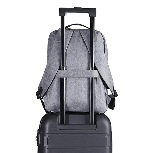 Descrição: Mochila de nylon 21 litros com três compartimentos, sendo o principal com bolso para notebook 15,6. Com divisórias internas para acessórios, a mochila possui bolso lateral, suporte externo usb e alça para encaixe em malas de viagem.