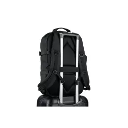 Mochila “Roll top”, um design em sistema de fecho que permite enrolar a parte superior até ajustar ao volume da mochila. Composta por poliéster reciclado 600D de alta densidade com revestimento resistente à agua e forro em poliéster reciclado 210D. Possui um compartimento principal com bolso almofadado para notebook até 14″, bolsos laterais e um bolso frontal com zíper impermeável. O acesso ao notebook pode ser feito pelo compartimento principal ou na parte posterior através do zíper. A parte posterior em malha incorpora uma alça trolley. Capacidade até 20 L. 270 x 440 x 150 mm