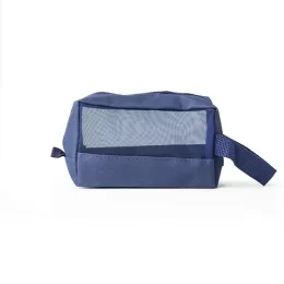 Descrição: Nécessaire confeccionada em nylon. Possui frente e verso com visor telado, zíper superior, alça para transporte e alça pequena para acesso de chaveiro ou gancho.