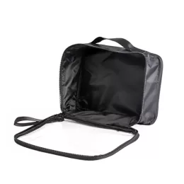 Descrição: Nécessaire confeccionada em nylon, com frente em visor transparente, fechamento por zíper e alça superior. Inclui também uma alça de transporte em nylon.