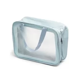 Descrição: Nécessaire de PVC e PU resistente à água, com duas alças laterais de mão.