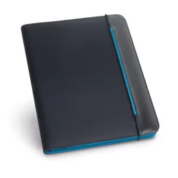 Pasta A4 em Couro Sintético e 800D poliéster. Interior em microfibra. Bloco: 20 folhas pautadas. Esferográfica não inclusa. 245 x 315 x 15 mm