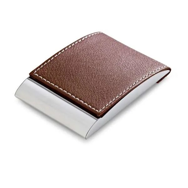 Porta Cartões em Metal e Couro Sintético. Incluso caixa. 97 x 63 x 14 mm | Caixa: 105 x 70 x 15 mm