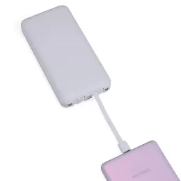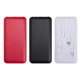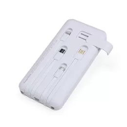 Descrição: Nosso power bank 10.000mAh 4 em 1 é uma solução prática e eficiente para manter os dispositivos sempre carregados, mesmo quando estiver em movimento. Feito em plástico, este carregador portátil é compatível com diversos dispositivos, pois conta com quatro cabos acoplados: Lightning, tipo-C, micro-USB e USB. Além disso, o power bank possui um suporte lateral integrado, feito para manter o celular na horizontal durante o carregamento, permitindo assistir vídeos ou participar de reuniões enquanto o dispositivo carrega. Funcional, nosso carregador é equipado com duas lanternas para situações de emergência. Sua entrada micro-USB 5V=2.1A e saída USB 5V=2.1A, oferece um desempenho eficiente e rápido para o dia a dia.