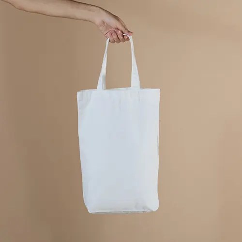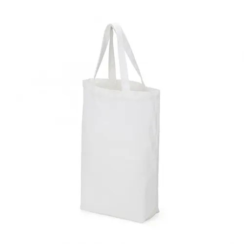 Sacola de algodão com alças costuradas na parte interna.