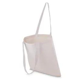 Sacola em Algodão Cru 200g/m² com base plana. Alça com altura de 31 cm, ideal para transporte.