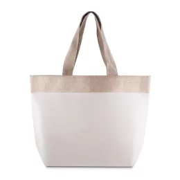 Sacola de Juta 360g/m² com bolso frontal em Algodão Cru e alças resistentes em Algodão Cru. Base plana para maior estabilidade,interior revestido em plástico PP. Alça com altura de 30 cm, ideal para transporte.