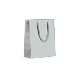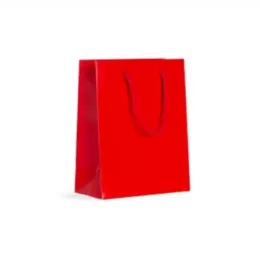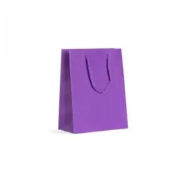 Sacola em papel Off-Set Colorido 190 g/m² com alças de cordão polipropileno. Sem fundo reforçado.