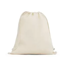 Sacola tipo mochila 100% algodão orgânico (140 g/m²), com alças em algodão para fechar. 370 x 410 mm