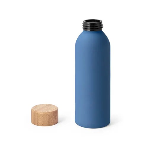 Squeeze em alumínio com acabamento emborrachado e tampa em bambu. Capacidade até 550 ml. Food grade. Caixa branca 94656 vendida opcionalmente. ø65 x 197 mm