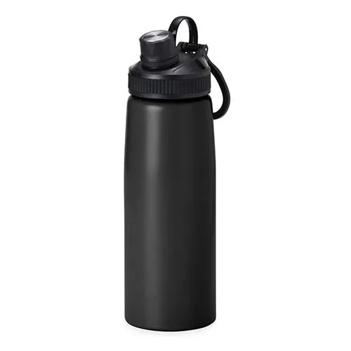 Descrição: Squeeze inox 900ml com tampa plástica, bocal com tampa protetora e alça para transporte.