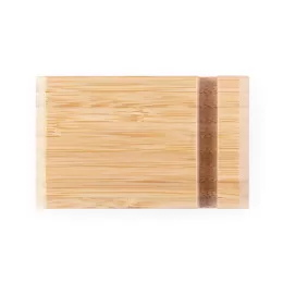 Suporte para celular em bambu, com 2 canaletas de tamanhos diferentes, uma em cada lado. A cor e o resultado da impressão nos materiais naturais pode variar entre produtos. 80 x 130 x 15 mm