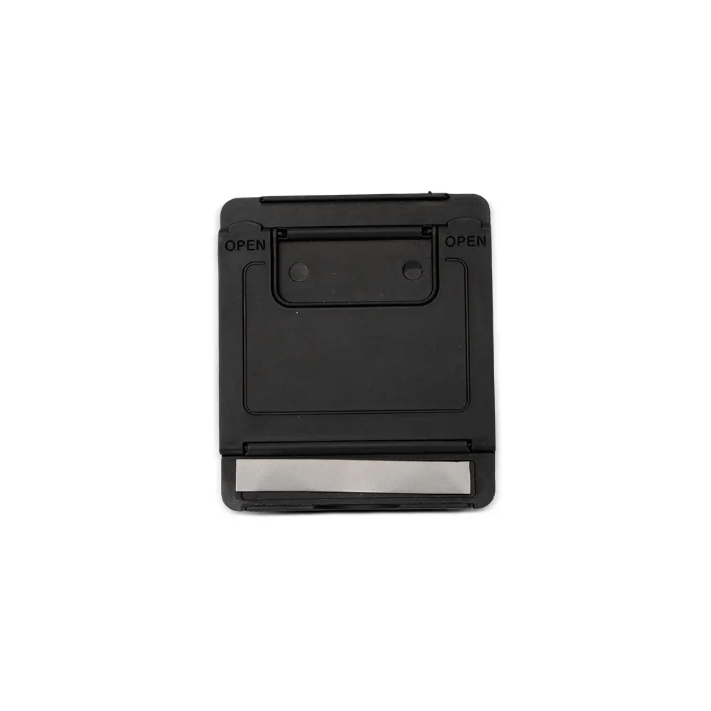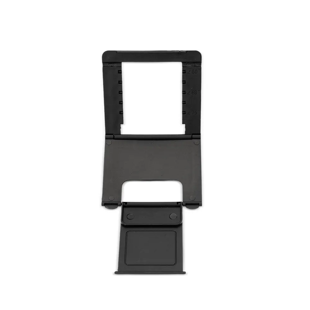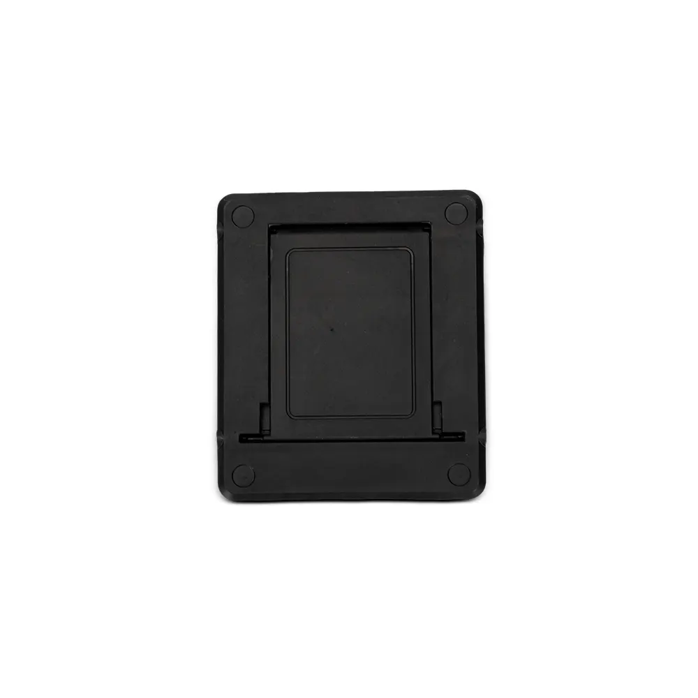 Descrição: Suporte para celular em PVC com aberturas para encaixe na parede durante a recarga do aparelho.