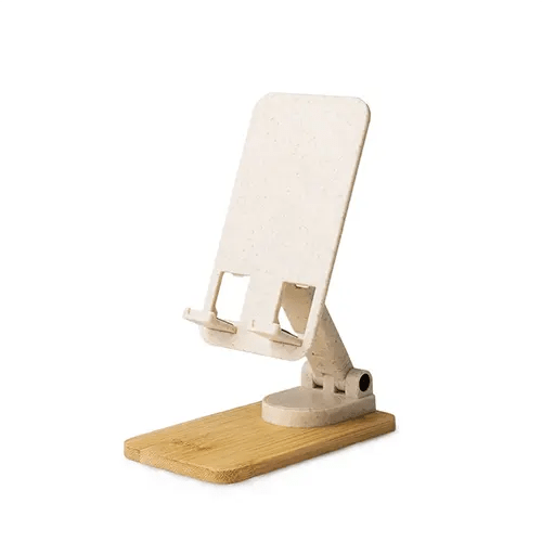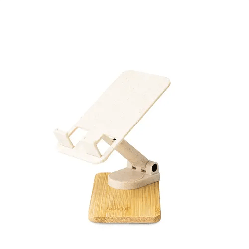 Suporte retrátil para celular com giro 360° e reclinação para diferentes posições. Produzido em fibra de trigo, o suporte possui ângulo ajustável e extensão de altura. As “canaletas” com silicone encaixam perfeitamente ao eletrônico sem bloquear a visualização da tela, além do espaçamento ideal que permite o carregamento do celular/tablet no suporte sem bloquear a visão ou atrapalhar sua estadia. Contém base de bambu e detalhes de silicone antiderrapante, o suporte permanece fixo e estável em diversas superfícies.