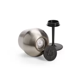 Descrição: Taça térmica com capacidade de até 350ml. Contém estrutura em inox de parede dupla e haste em plástico com base emborrachado antiderrapante. Pode ser desmontada e utilizada como copo. Contém base antiderrapante para encaixar no copo quando desmontada.